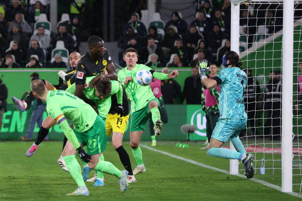 بازی با سلسله حملات متوالی دورتموند آغاز شد و ماکسیمیلیان بیر و یولیان برانت در همان دقیقه ۲ یک موقعیت عالی را از دست دادند. شلیکهای متوالی سرهو گیراسی، دونیل مالن و برانت در دقایق ابتدایی راه به جایی نبرد اما طلسم دروازهها تنها تا دقیقه ۲۵ پابرجا ماند. دورتموند در سمت راست صاحب یک ضربه کرنر شد و ارسال خطرناک رامی بنسبعینی در میان انفعال خط دفاع و سنگربان ولفسبورگ مستقیماً به دهانه دروازه و داخل محوطه ۶ قدم رسید تا دونیل مالن با ضربه والی حساب کار را یک بر صفر کند. این نخستین گل بال راست هلندی در ۹ مسابقه اخیر برای تیم ملی و باشگاهی به شمار میرفت و او خیلی ساده این طلسم را شکست.