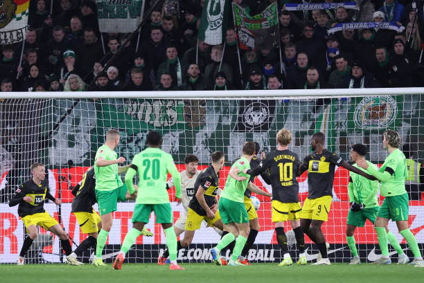اوضاع برای دورتموند دقایقی بعد و با اخراج پاسکال گروس به دلیل جلوگیری از موقعیت تک به تک حریف سختتر جلوه کرد. خطای مدافع راست ۳۳ ساله، سرنگون شدن لوکاس انمچا در پشت محوطه جریمه و کارت قرمز داور را در پی داشت. مقاومت دورتموند در مقابل حملات حریف با وجود یک یار کمتر موفقیتآمیز ماند. ادامه حملات ۲ تیم در واپسین دقایق مسابقه نتیجهای در پی نداشت و بازی با همان نتیجه ۳ بر یک به سود دورتموند خاتمه یافت. دورتموند با انجام آخرین مسابقه در نیمه اول فصل به تعطیلات ۱۸ روزه زمستانی میرود و جمعه ۱۰ ژانویه (۲۱ دی) در مسابقهای حساس از چارچوب هفته شانزدهم رقابتهای فصل ۲۵-۲۰۲۴ بوندسلیگای یک آلمان در ورزشگاه سیگنال ایدونا پارک میزبان شاگردان ژابی آلونسو در بایرلورکوزن خواهد بود. لورکوزن با ۳۲ امتیاز در رده دوم جدول و فاصله ۴ امتیازی بایرن صدرنشین قرار دارد.