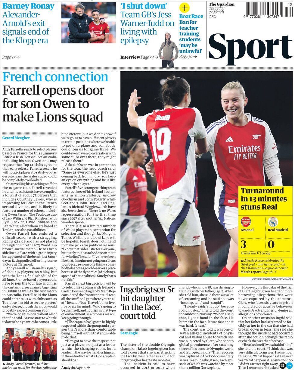 گاردین، دیگر جریده انگلیسی تاریخسازی آرسنال در لیگ قهرمانان زنان اروپا با ثبت بازگشت مقابل رئال مادرید و صعود به جمع 4 تیم برتر اروپا را برجسته کرده است. شب گذشته آرسنال موفق شد شکست 2 گله دور رفت مقابل مادرید را جبران کرده و از نخستین حضور تاریخ رئال مادرید در نیمهنهایی لیگ قهرمانان زنان جلوگیری کند.