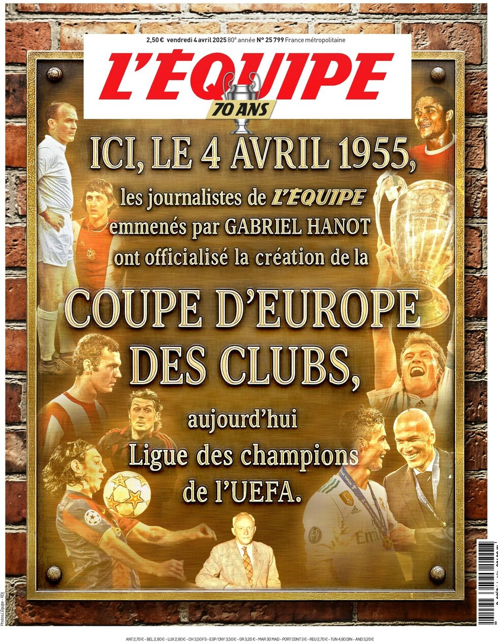 اکیپ فرانسه در یادداشتی جالبتوجه، در هفتادمین سالگرد تاسیس لیگ قهرمانان اروپا به تمجید از گابریل آنو و مصاحبه با او، پدر فوتبال حرفهای در فرانسه و روزنامهنگار سابق پرداخته است. او فوتبال فرانسه را از آماتوریسم به ساز و کار حرفهای رساند، ایده برگزاری لیگ قهرمانان اروپا را داد و از ایدهپردازان اهدای توپ طلا بود.