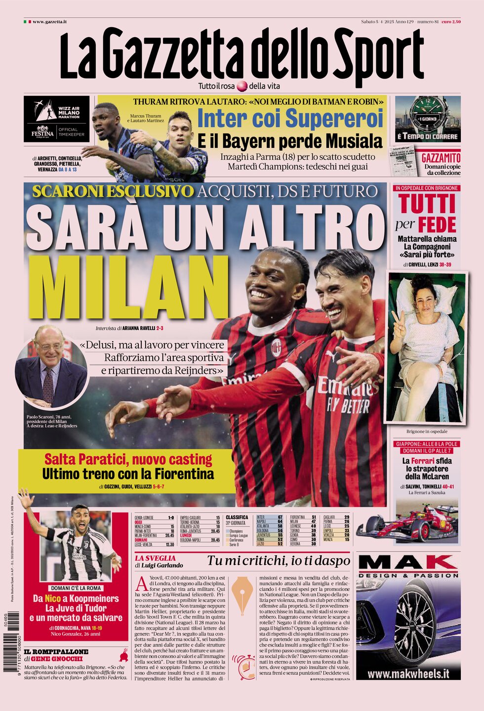 در ایتالیا نیز جراید همچون گاتزتا دلوسپرت به استقبال رقابتهای هفته سیویکم سری آ رفتهاند. هفته سیویکم سری آ از جمعه شب با پیروزی جنوا بر اودینزه آغاز شده و تا دوشنبه شب ادامه خواهد داشت. نبرد بولونیا و ناپولی پایانبخش رقابتهای این هفته خواهد بود که بولونیا برای نگه داشتن شانس کسب سهمیه امید به پیروزی دارد و ناپولی پیش از نبرد در خانه حریف، امیدوار به امتیاز از دست دادن اینتر در خانه پارما خواهد بود.
