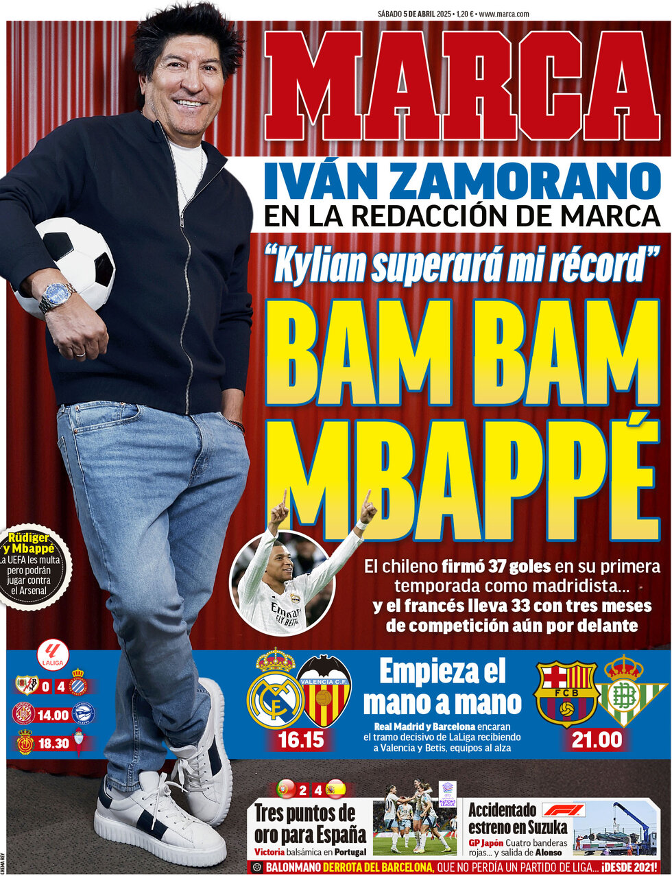 در اسپانیا، مارکا مصاحبهای اختصاصی با ایوان زامورانو انجام داده که گفته است: «کیلیان امباپه رکورد من را خواهد شکست!» مهاجم شیلیایی در نخستین فصل حضورش بهعنوان بازیکن رئال مادرید، 37 گل به ثمر رساند و امباپه در نخستین فصل حضور، تا بدین مقطع به مرز 33 گل زده رسیده است.