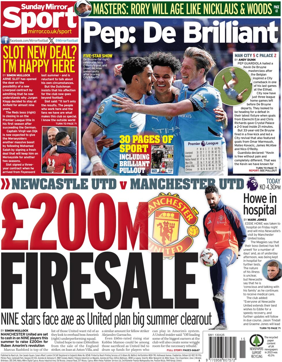 جراید انگلیسی صبح یکشنبه به پیروزی پر گل و جذاب منچسترسیتی مقابل کریستالپالاس پرداختهاند. منچسترسیتی در خانه مقابل شاگردان گلاسنر با 2 گل عقب افتاد اما در نهایت پیروزی 5 گله را به نام خود زد و در کورس کسب سهمیه لیگ قهرمانان اروپا از چلسی سبقت گرفت.