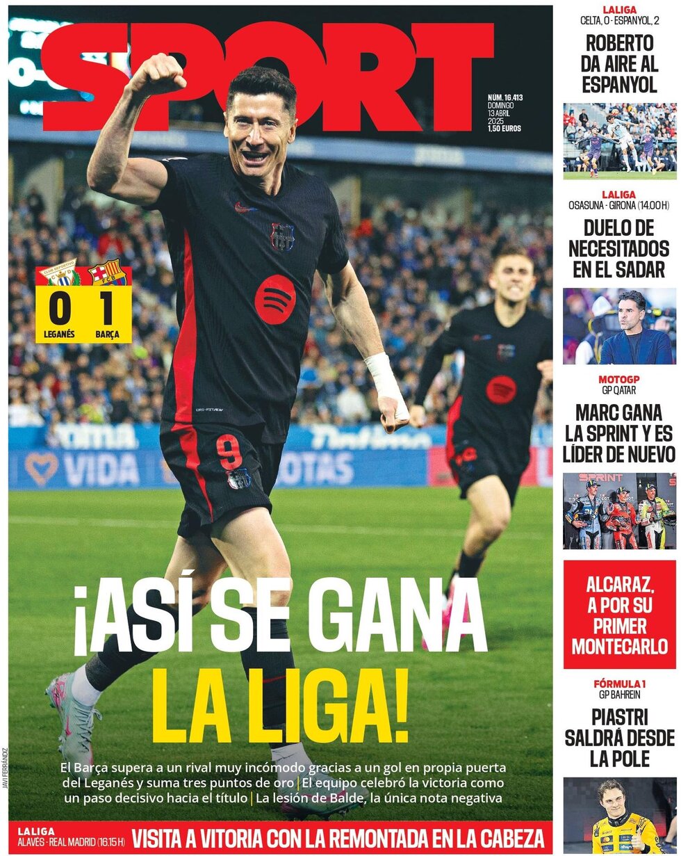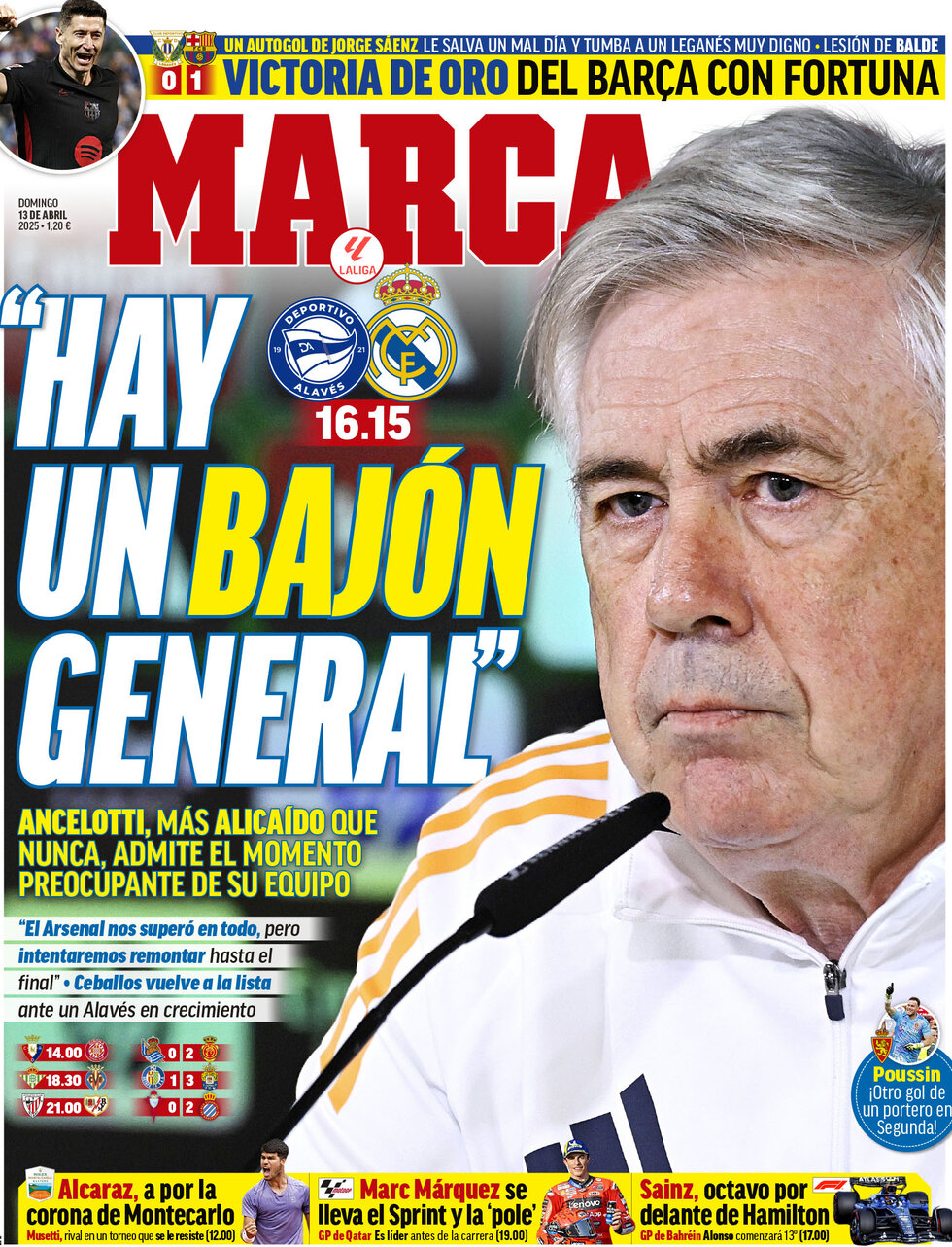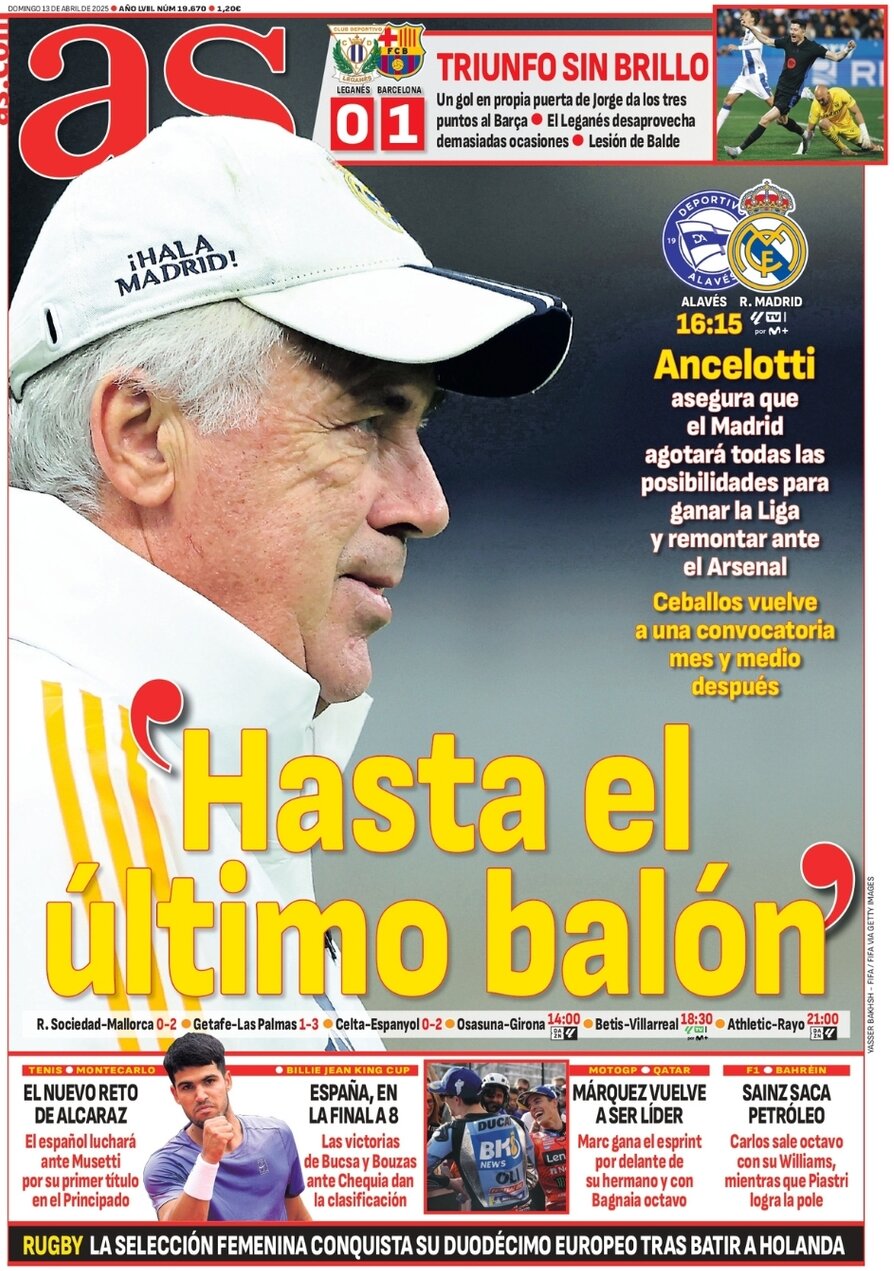 از میان جراید اسپانیایی، مارکا و آ س مصاحبه کارلو آنچلوتی در آستانه مصاف با آلاوس را برجسته کردهاند اما اسپورت بارسلون، پیروزی بارسلونا بر لگانس در یک دیدار دشوار خارج از خانه را پوشش داده است.