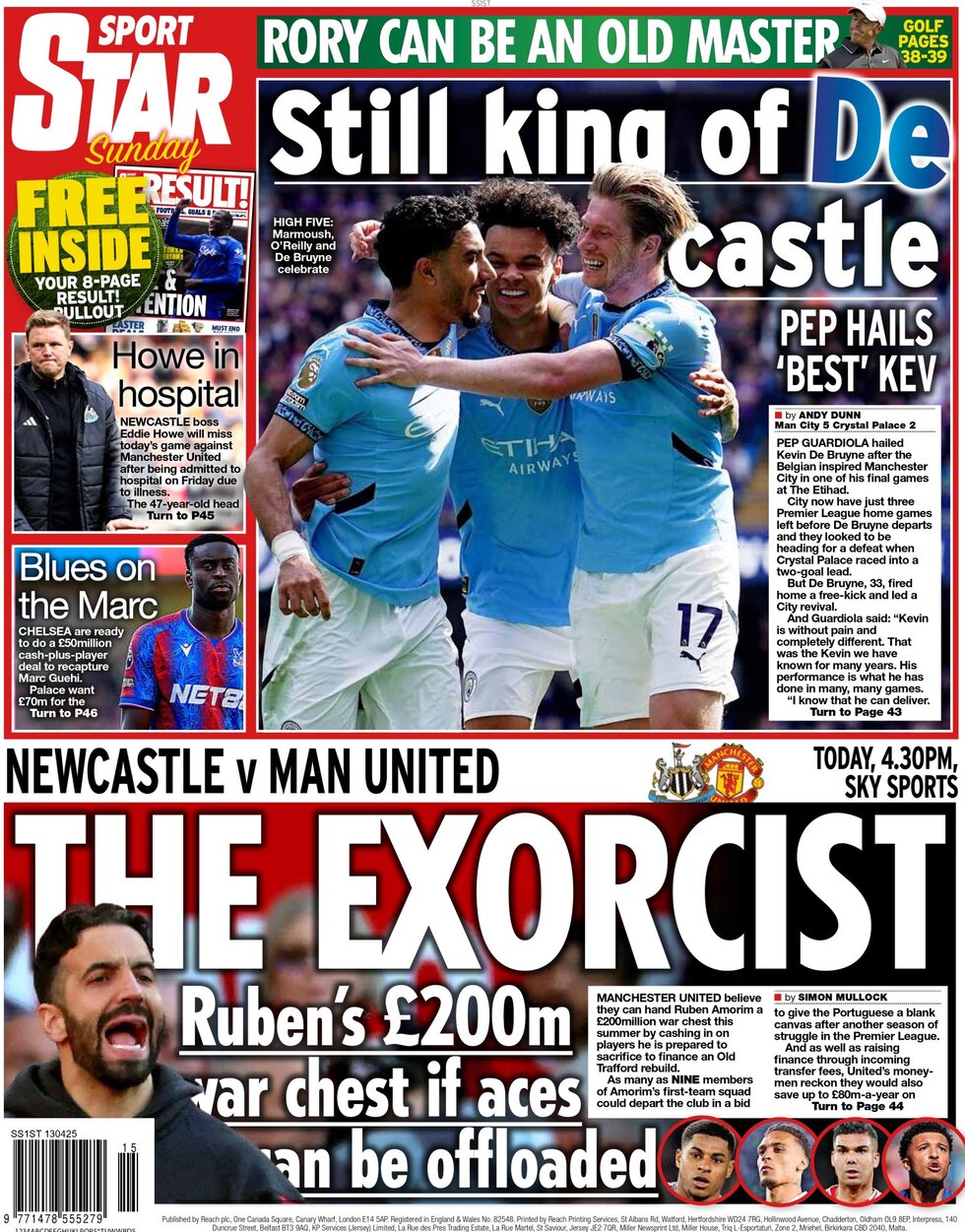 استار اسپورت در توصیف درخشش کوین دیبروینه از تیتر «او کماکان پادشاه قلعه است!» استفاده برده و در خبری دیگر، مدعی شده چلسی آماده ارائه پیشنهاد 50 میلیون پوندی به کریستالپالاس برای جذب مارک گئی خواهد بود. پالاس برای جذب گئی خواهان مبلغ 70 میلیون پوند است اما چلسی میتواند معاوضه یک بازیکن علاوه بر مبلغ یاد شده را نیز در این پیشنهاد ارائه کند.