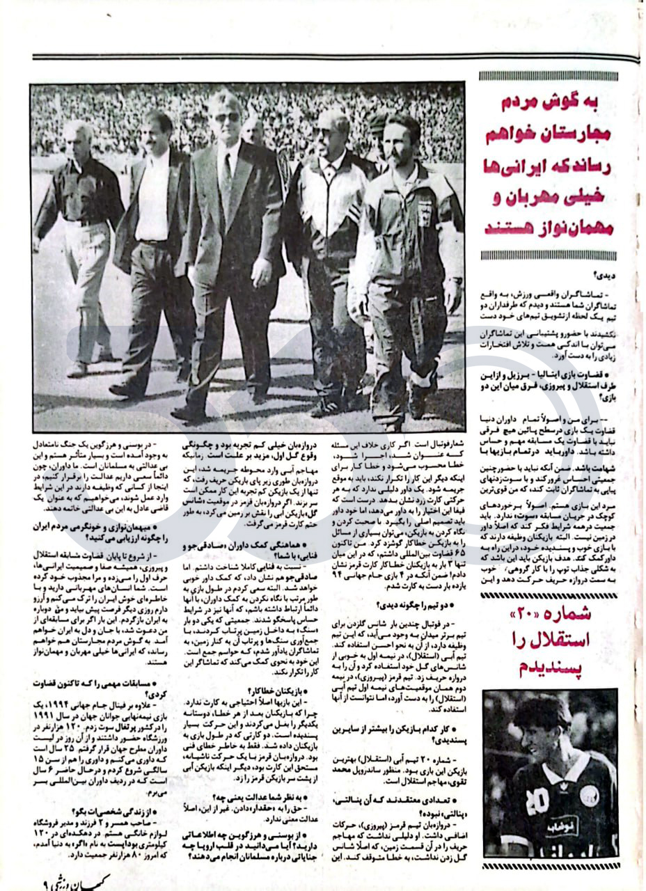 در سال 1374 دو سوم از تیم داوری فینال جام جهانی، قضاوت داربی تهران را بر عهده داشتند.