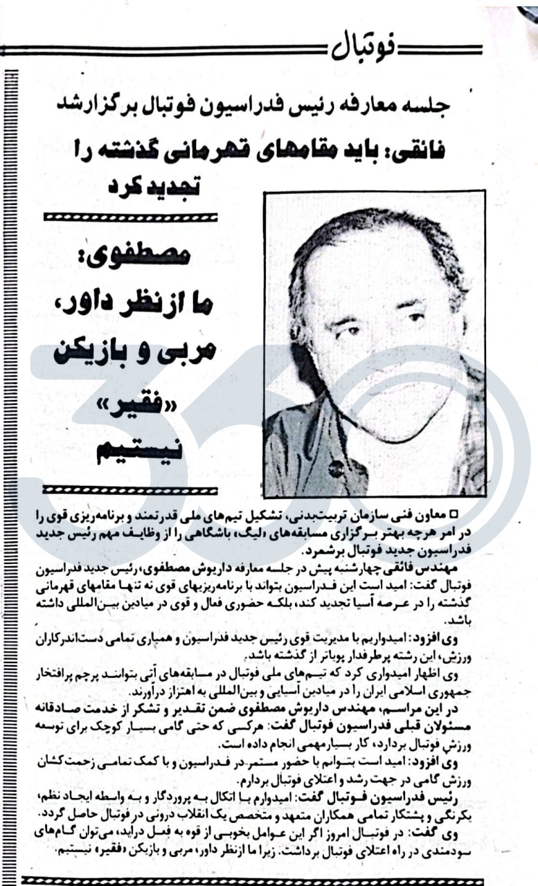به گزارش فوتبال 360، در دهه 1370 تغییر و تحولات زیادی در رأس هرم مدیریت فدراسیون فوتبال انجام میشد و عمر ریاست فدراسیون گاهی تنها به چند ماه میرسید. تا پیش از دهه 1380، رئیس فدراسیون فوتبال توسط ریاست سازمان تربیت بدنی منصوب میشد و به همین دلیل تغییرات در این مسند تا حد زیادی تابع تصمیمات شخصی ریاست سازمان تربیت بدنی بود و فرآیند کنار گذاشتن رئیس قبلی و انتصاب رئیس جدید فدراسیون فوتبال، تنها با یک امضا از سوی رئیس سازمان تربیت بدنی انجام میشد و نیازی به برگزاری مجمع و رأیگیری نبود.