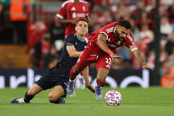میلوش کرکژ، دفاع چپ سابق بورنموث، خوب به نظر میرسید. هوگو اکیتیکه پر جنب و جوش به زمین آمد و با نفوذ به خط عرضی زمین، زمینه را برای گل اول صلاح فراهم کرد. این بازیکن فرانسوی نزدیک بود اولین گل خود را در آنفیلد به ثمر برساند اما خاکپو توپ را از جلوی پای او برداشت و دومین گل خود را در بازی زد. البته این سومین گل او به حساب میآید؛ اگر گل به خودیاش با ضربه سر تصادفی را هم در نظر بگیریم.