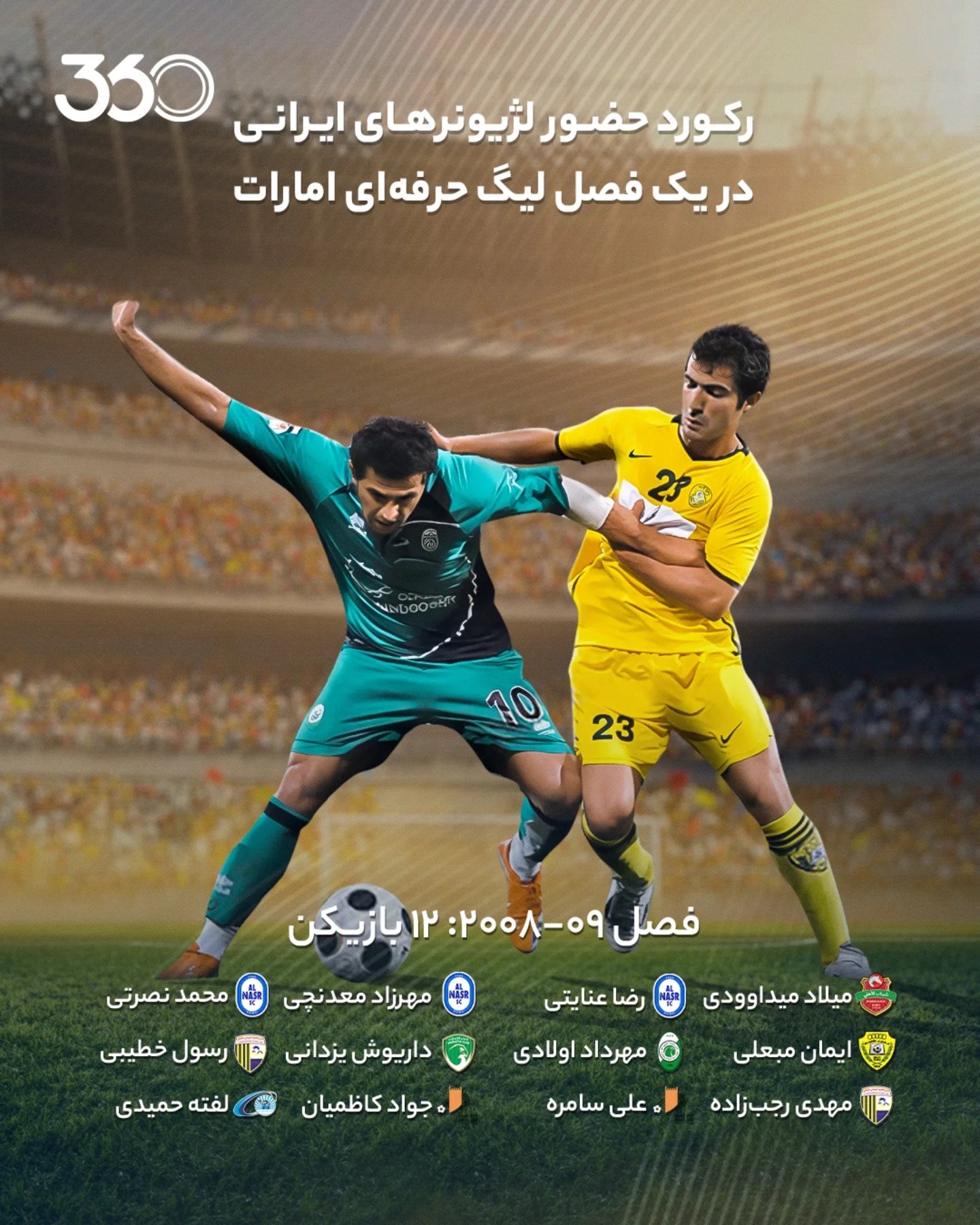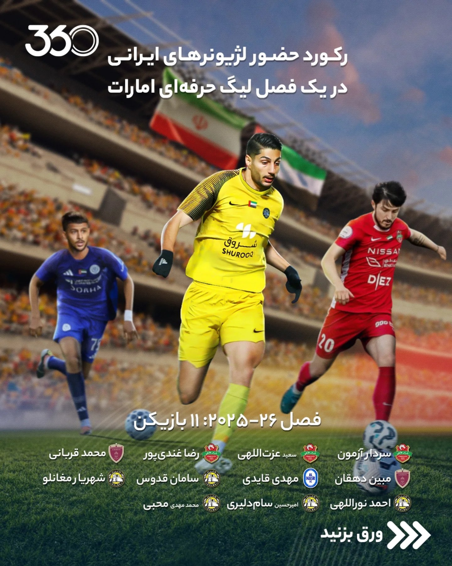 ستارههای ایرانی در فصل منتهی به جام جهانی 2026 در شرایطی در فوتبال باشگاهی امارات جولان میدهند که هنوز رکورد تاریخی بیشترین حضور لژیونرهای ایرانی در یک فصل ادنوکلیگ نشکسته است. در فصل 09-2008، 12 بازیکن ایرانی در این رقابتها حضور داشتند که آن 12 بازیکن، میلاد میداوودی، رضا عنایتی، مهرزاد معدنچی، محمد نصرتی، ایمان مبعلی، مهرداد اولادی، داریوش یزدانی، رسول خطیبی، مهدی رجبزاده، علی سامره، جواد کاظمیان و لفته حمیدی بودند.