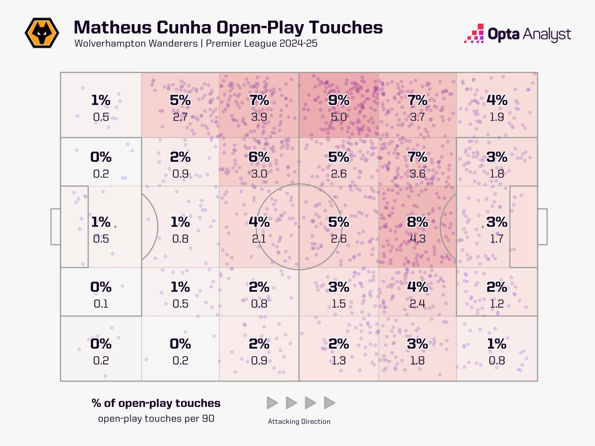 این آمار برای آماد دیالو (54.7 درصد) و برونو فرناندس (60.7 درصد) کمی متعادلتر به نظر میرسید اما برایان امبومو (62.9 درصد) و متئوس کونیا (71.5 درصد) چندان بازیکنانی بیمیل به شوتزنی نیستند. حتی نرخ تصمیمگیری منجر به شوت بهجای خلق موقعیت از طریق ارسال پاس، برای کونیا بیشتر از گارناچوست اما ستاره برزیلی (38.4 بهازای هر 90 دقیقه) تمایل بیشتری به ارسال پاس نسبت به الخاندرو گارناچو (37.8) دارد.باید توجه داشت این آمار را کونیا در تیمی (47.9 درصد) از خود بر جای گذاشته که نسبت به منچستریونایتد (53.4 درصد) بسیار کمتر در موقعیت مالکیتمحور قرار میگرفت و حضور متئوس کونیا به جای الخاندرو گارناچو تاثیر بیشتری خواهد داشت.