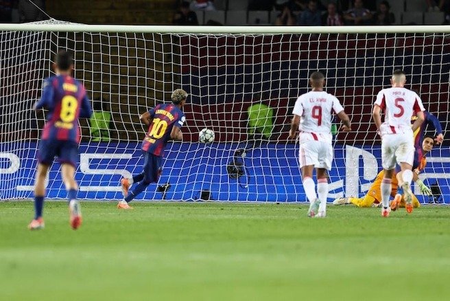 به گزارش فوتبال 360، در سومین هفته از رقابت‌های لیگ قهرمانان اروپا، بارسلونا در ورزشگاه المپیک بارسلون میزبان المپیاکوس بود و نمایش فراتر از انتظار  را به رخ کشید. بارسلونا با برتری مطلق در زمین، بازی را با نتیجه شش بر یک به پایان رساند و  ۶ امتیاز خود را در جدول تثبیت کرد. ستاره بی‌چون و چرای میدان فرمین لوپس بود که با هت‌تریک بار دیگر توانایی خود را اثبات کرد. یامال و راشفورد گل‌های مهم دیگری به ثمر رساندند. المپیاکوس تنها توانست با پنالتی الکعبی، رنگی به کار اضافه و مهدی طارمی با ورود از نیمکت نتوانست تغییری ایجاد کند. در نهایت بازی با نتیجه ۶ بر یک به سود بارسلونا به پایان رسید.